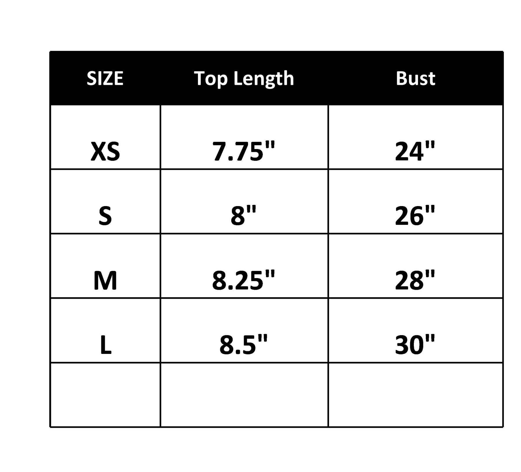 Top Size Chart