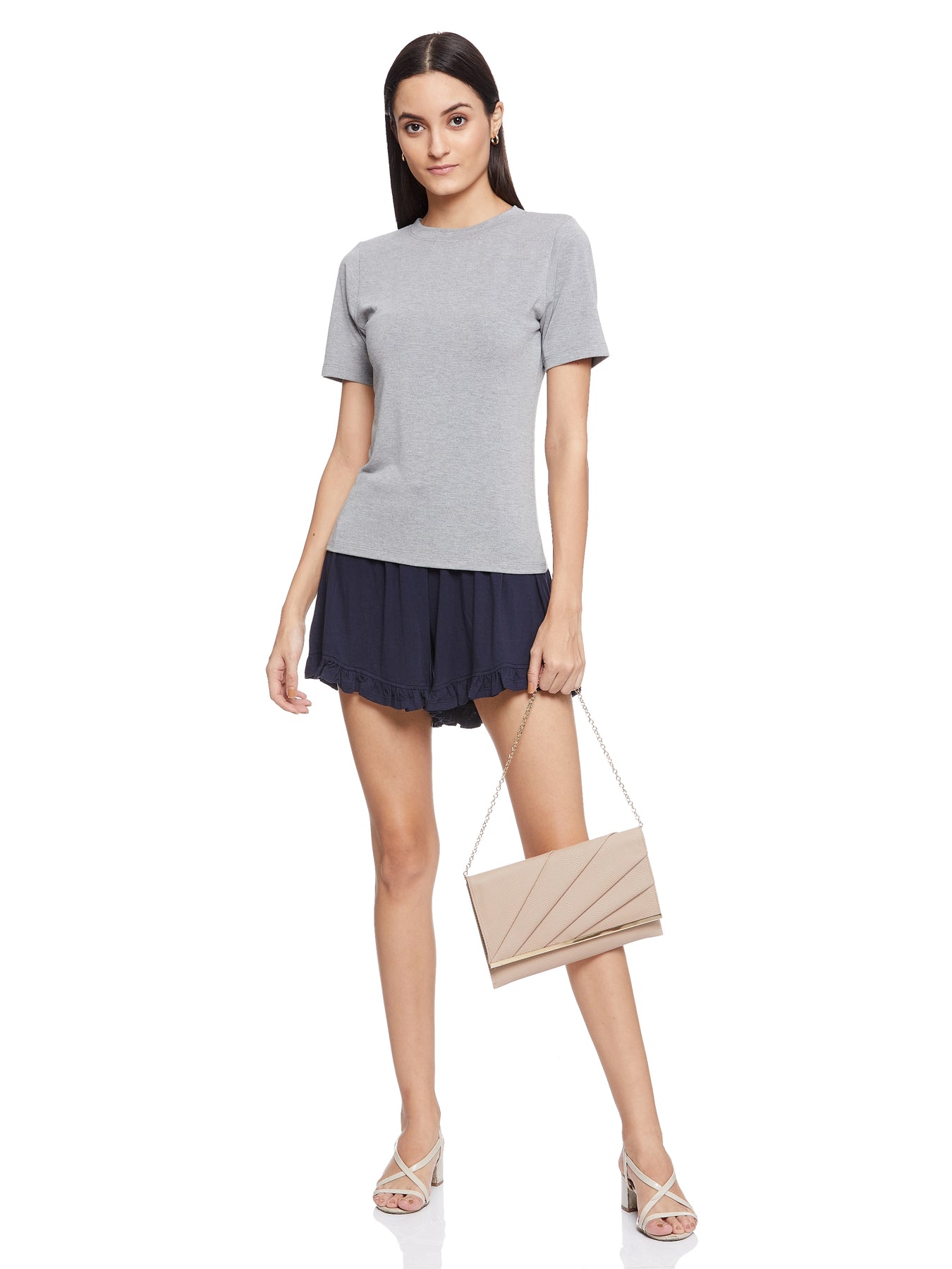 All the women love flaunting their clean, stunning, and smooth legs and at the same time, they are wary of overdoing it. Well, the Shorts With Ruffle Detail Bottom (Navy) offers just the right coverage, and thus both leg flaunting and elegance are balanced properly. The length of the shorts makes them perfect for women of every type of fashion taste.
